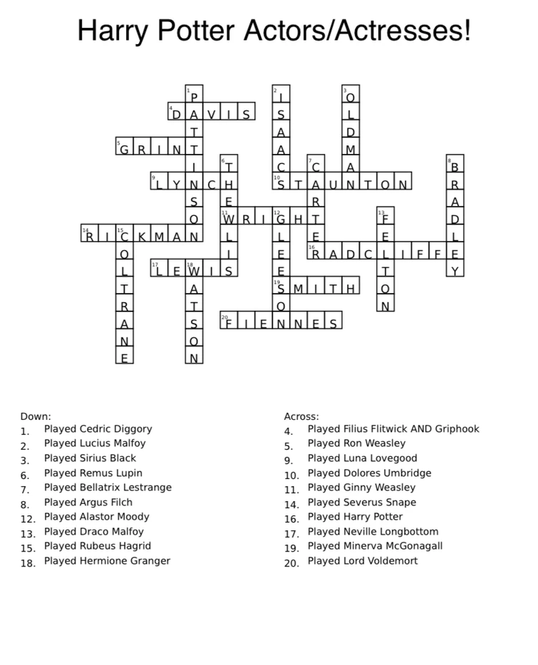 Crossword Puzzles Harry Potter - Harry potter fans can wave their pencils at these free puzzles and games with harry potter and hogwarts themes.. Themed crossword puzzles with a human touch. Usa daily crossword fans are in luck—there's a nearly inexhaustible supply of crossword puzzles online, and most of them are free. Smart, easy and fun crossword puzzles to get your day started with a smile. Stan's daily crossword delivers new crossword puzzles each day from newsday's crossword editor, stan newman. Crossword puzzles are for everyone.
